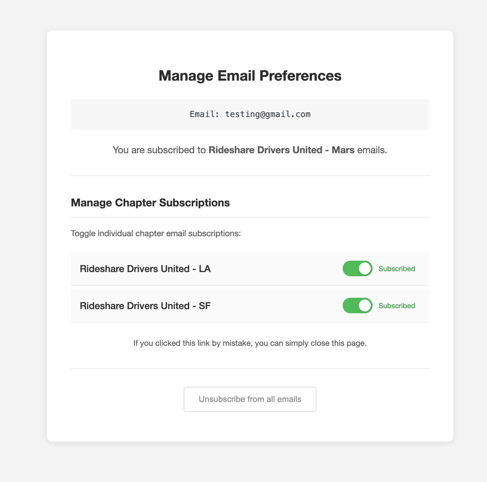 - Unsubscribe from this chapter - Revokes email permission for just that chapter